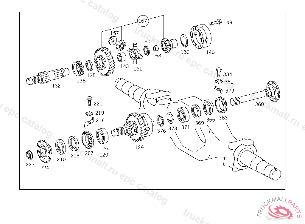 DIFFERENTIAL GEAR , FIRST EXHAUST STOCK OF OLD PARTS UP TO FRONT AXLE V 151342, Replaced By: A3873509823