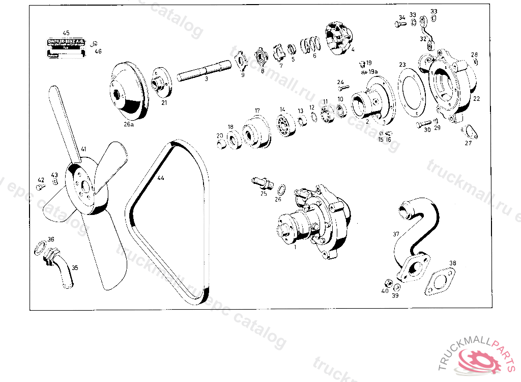 WATER PUMP, COMPLETE THREADED NIPPLE 180 203 01 08 EXCHANGED AGAINST LOCKING SCREW M 16 X 1,5 DIN 906 FROM ENGINE