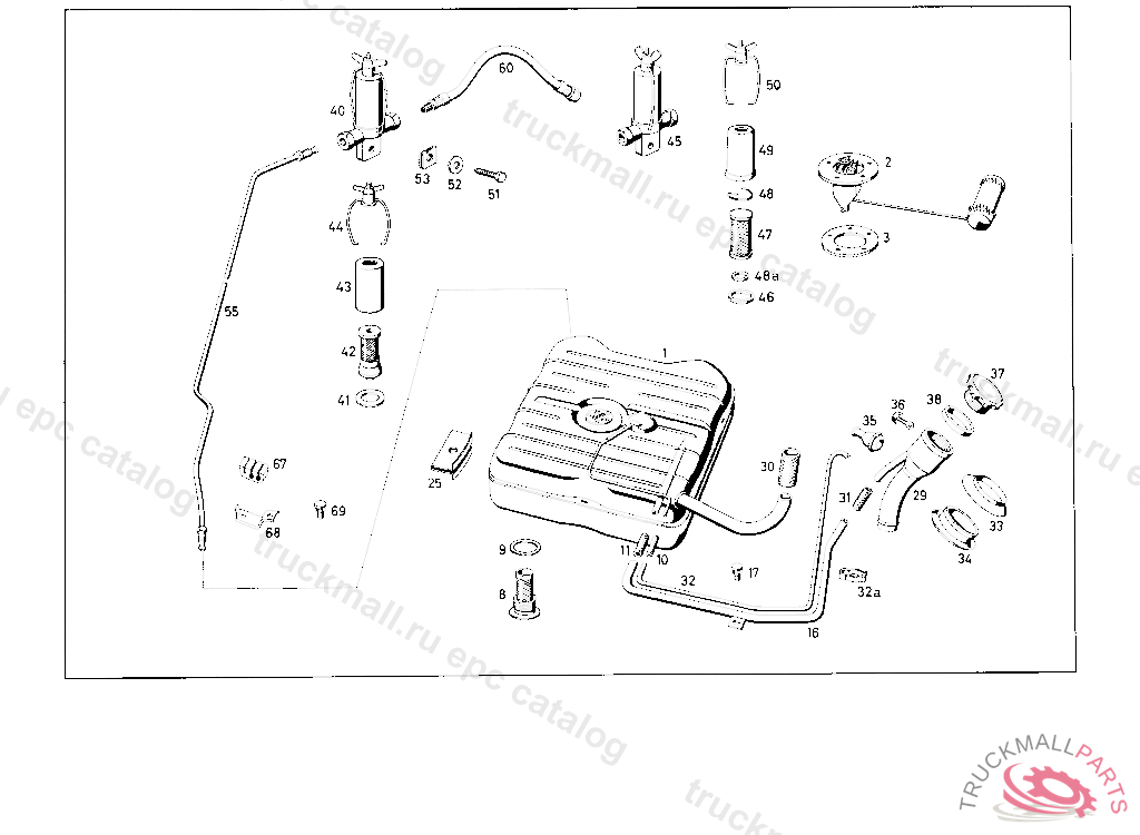 FUEL TANK WITH SCREW PLUG. FUEL TANK CAPACITY 56 LITERS