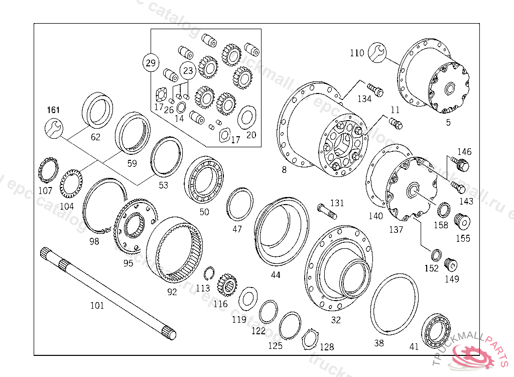 PLANETARY GEARING , FIRST EXHAUST STOCK OF OLD PARTS UP TO REAR AXLE V 477618, Replaced By: A3463504209