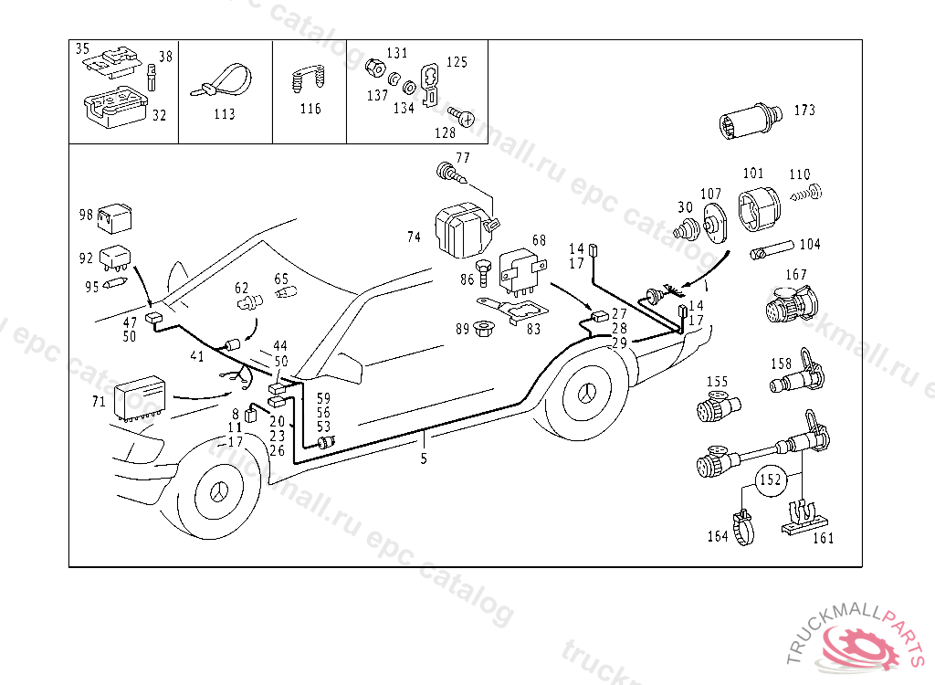 ELECTRIC CABLE REAR LEFT AND RIGHT, FOR USE WITH 13-POLE TRAILER PLUG SOCKETF 084208