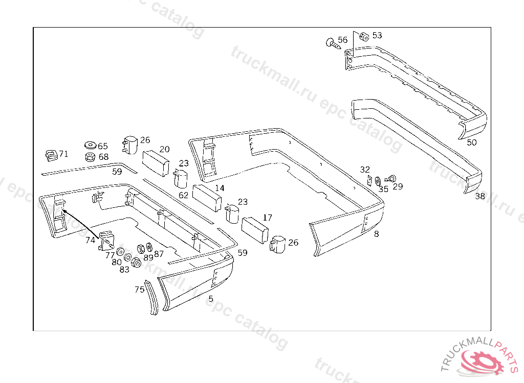 PANELLING REAR BUMPER, TO BE PAINTED PRIOR TO INSTALLATION FOR COLOR NUMBERS AND PAINT CODES USED FOR OUTSIDE PARTS,SEE FOOTNOTE 901
