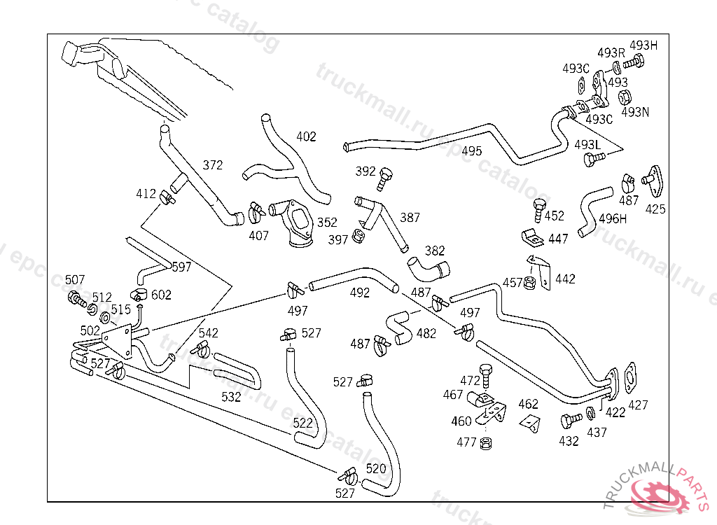 HOSE HEATER RETURN, FROM RADIATOR TO CAB HEATING PIPE