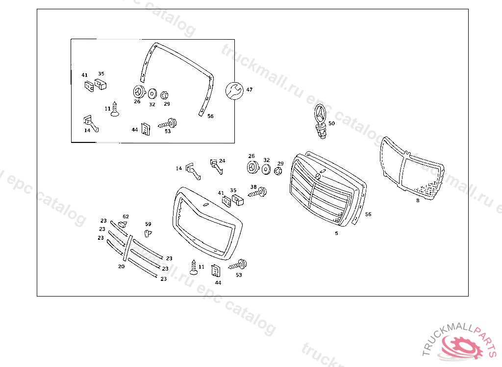 RADIATOR GRILLE SHELL , EXHAUST STOCK OF OLD PART NUMBERS FIRST UP TO IDENT NO.: A 307160, Replaced By: A1268800883