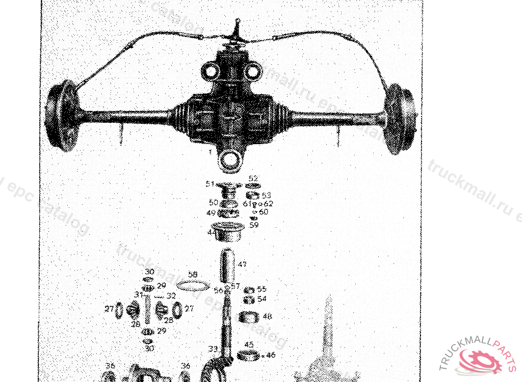 HINTERACHSE MIT BREMSSEILZUGEN, BREMSEN 40-MM BREIT UND BREMSTROMMELN UBERSESSUNG 1:4,125 SPURWEITE 1342 MM AB 136 01 20421 HINTERACHS-N