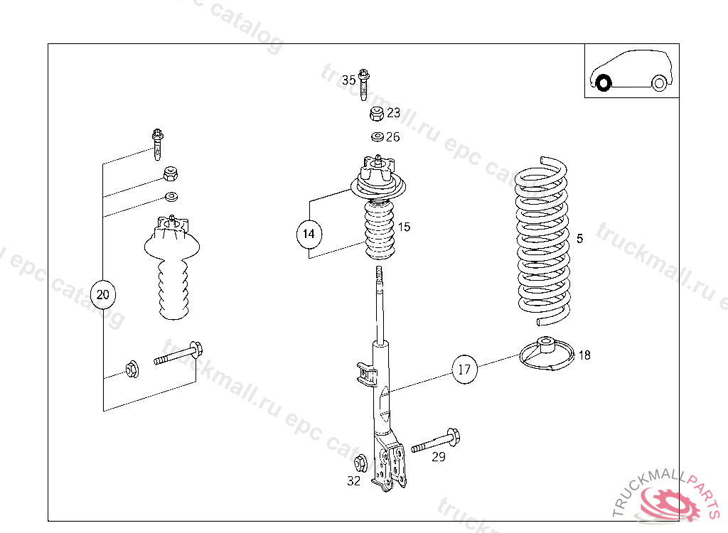 BOLT HYDROPNEUMATIC SPRING LEG TO FRAME M8X35