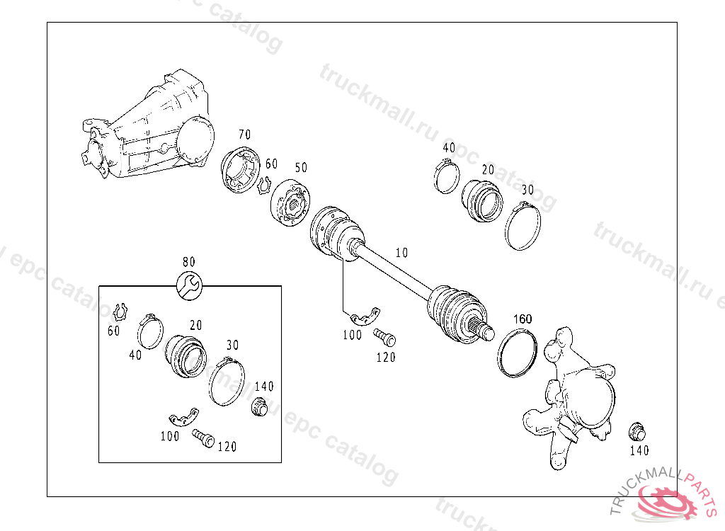 BOOT PLUGGED-IN PROPELLER SHAFT, CAUTION FROM IDENT: A 026027 TO IDENT: A 032310 MIXED INST. POSSIBLE NOTE REMOVED AXLE SHAFT, NOT VALID FOR BOLT-ON AXLE SHAFT