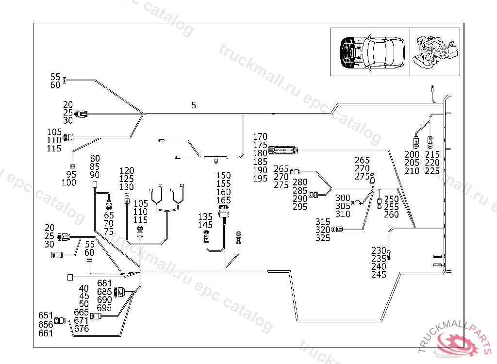 WIRING HARNESS ENGINE COMPARTMENT, UP TO IDENT. NUMBER F298214, ORDER PART NUMBER W/O ES1 AS OF IDENT. NUMBER F298215, ORDER PART NUMBER WITH ES1 98