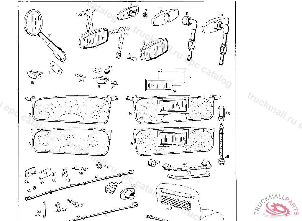 MIRROR, ANTI-DAZZLE. TIPPING MIRROR, ANTE-DAZZLE WITH BALL PIN
