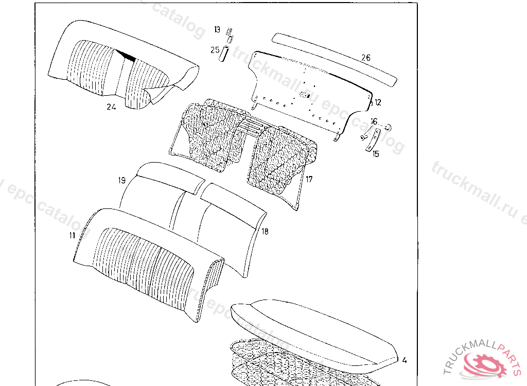 FONDKISSEN WEISSGEPOLSTERT OHNE STOFFBEZUG BEI BESTELLUNG FAHRGESTELL-NR. ANGEBEN UND OB SITZ MIT PLUSCH, CORD ODER MB-TEX BEZOGEN