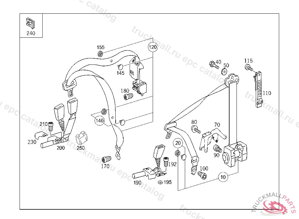SEAT BELT LESS LOCK, REAR SEAT,RIGHT, Replaced By: A2038608485