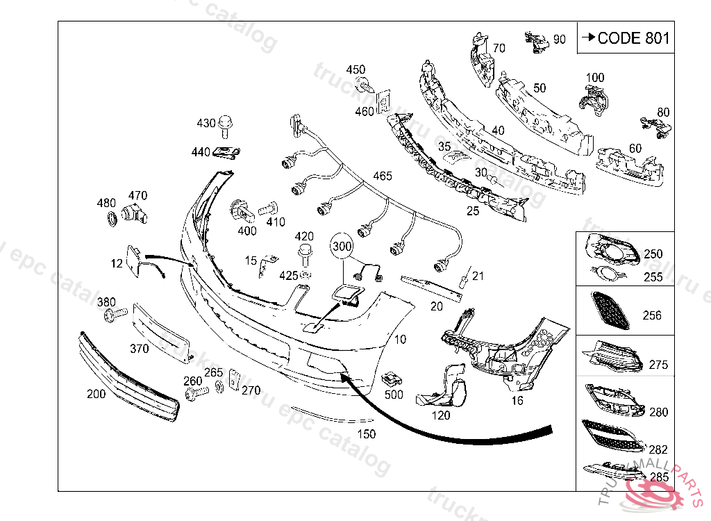 TRIM BUMPER FRONT BUMPER, F 10701020071217 TO BE PAINTED PRIOR TO INSTALLATION ALSO ORDER INCLUDED ANCILLARY PARTS WITH COLOR VARIANT ES2 9999QFT204L9000 COLORLESS, Replaced By: A2048804140, +001A2048802124, +001A2048802224