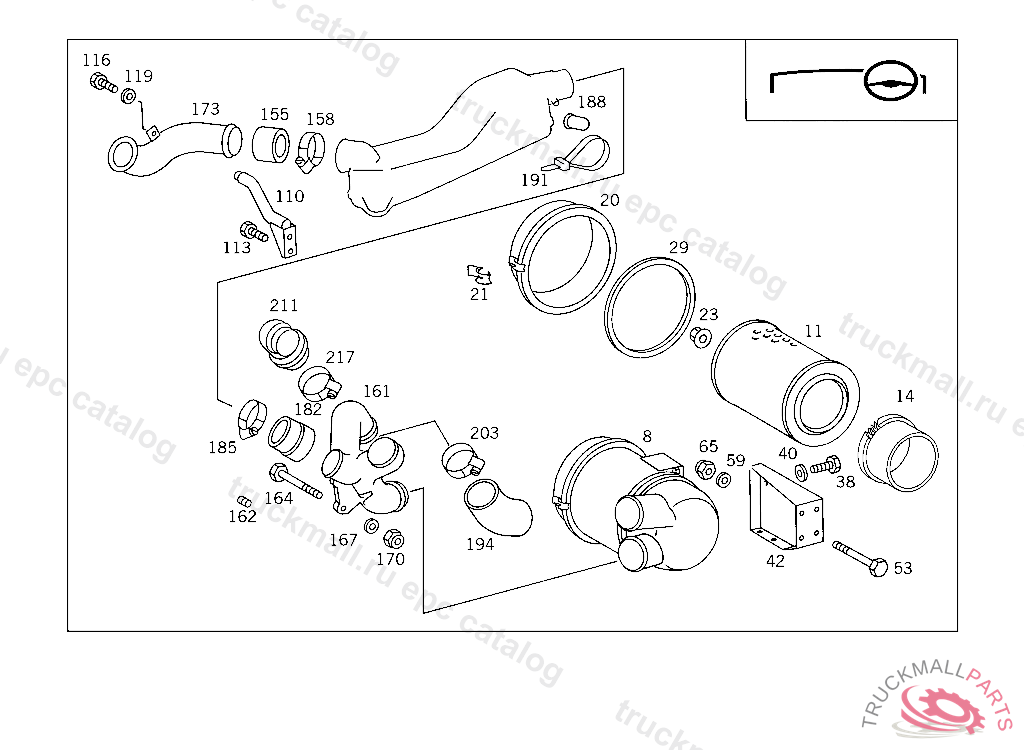HOSE CLAMP FROM AIR CLEANER TO TRANSVERSE INTAKE PIPE, Replaced By: A0019951910