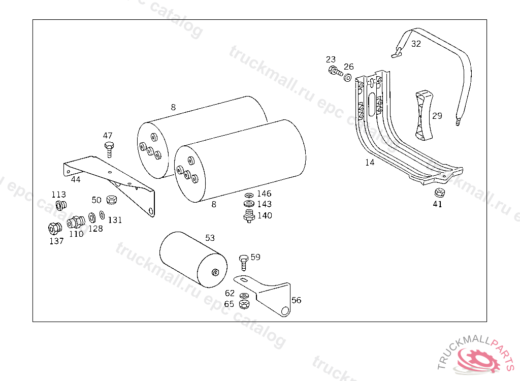 RESERVOIR COMPRESSED AIR 30 L, TO VOSS 232,5 9363665 812731 FOR VEHICLES WITH VOSS 230 CONNECTOR: ADD. MOUNT FITTING "A 004 997 82 72" WITH O-RING "A 000 987 04 46" AND THRUST RING "A 000 997 02 03" TO AIR RESERVOIR