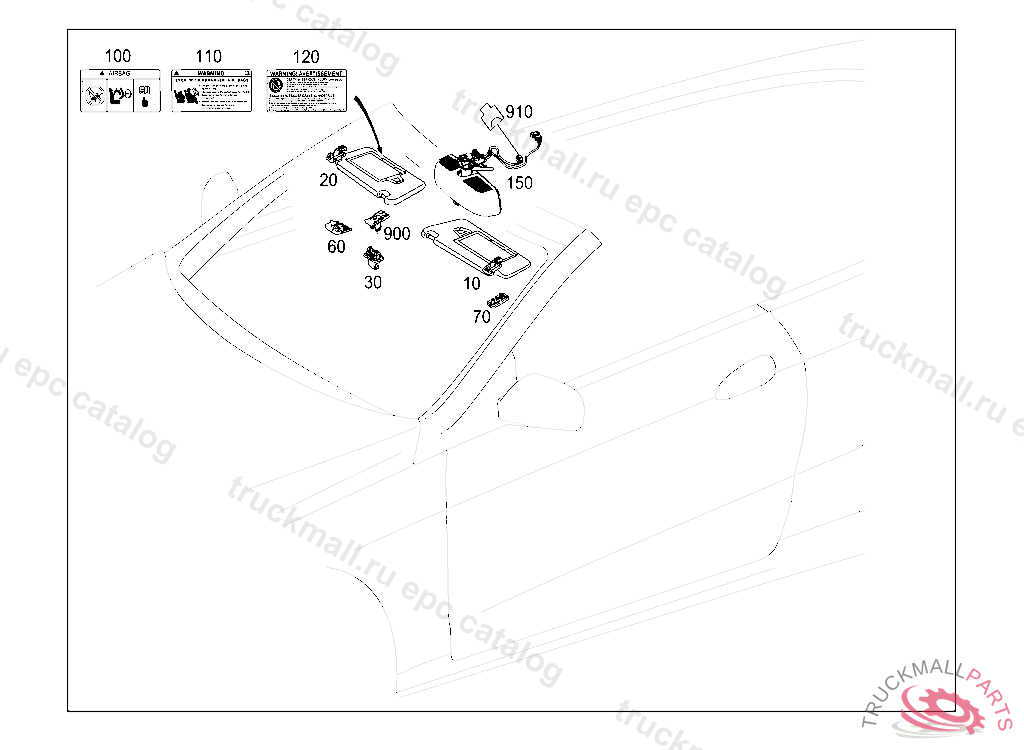 GUIDE SIGN NOTE REGARDING PASSENGER AIRBAG ON SUNVISOR