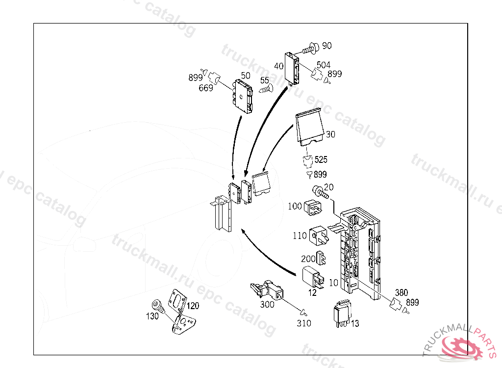 ELECTRICAL CENTER SIGNAL ACQUISITION AND ACTUATION MODULE WITH REAR FUSE AND RELAY MODULE SAM/SRB, E 00000120000101805 A 74574920041029805, Replaced By: A2035454701