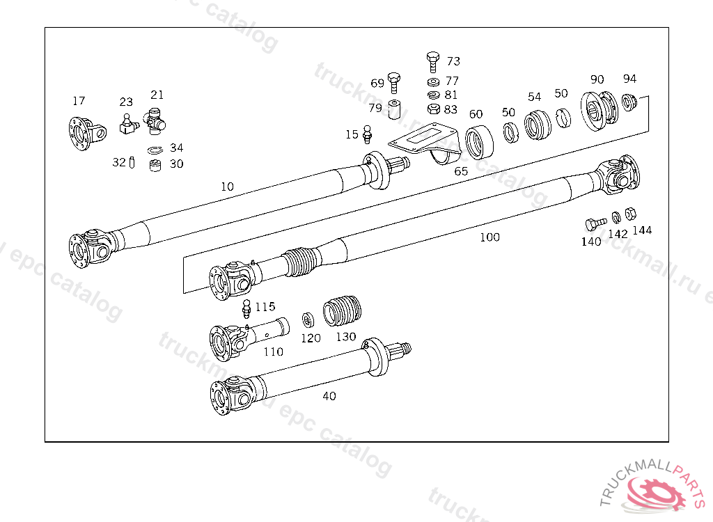 PROPELLER SHAFT FROM TRANSMISSION TO INTERMEDIATE SHAFT BEARING 1453 MM, UP TO IDENT NO. 003341 EXCEPT FOR 003321,003329,003335,003337,003339