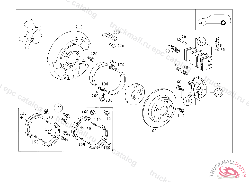 BRAKE SHOE RANGE OF DELIVERY, WHEN SELLING BRAKE LININGS TO END USERS/DESK BUYERS THE A 203 005 25 99 IS TO BE HANDED OVER FREE OF CHARGE