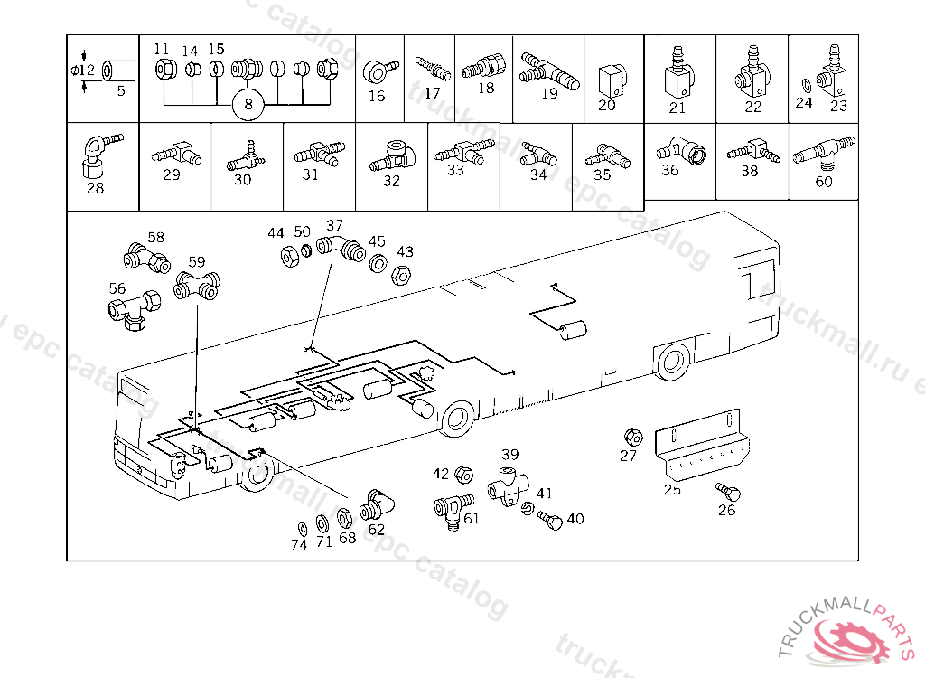LINE (COILED TUBE), TO TRAILER BRAKE LINE COUPLING 1 X 8 + 2 X 12, 270 MM