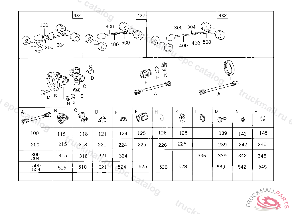 PROPELLER SHAFT , BEARING BUSHING O.D., 38 MM, Replaced By: A6744101004, +001A3832820262, +001A3814110145, +001A3839900019