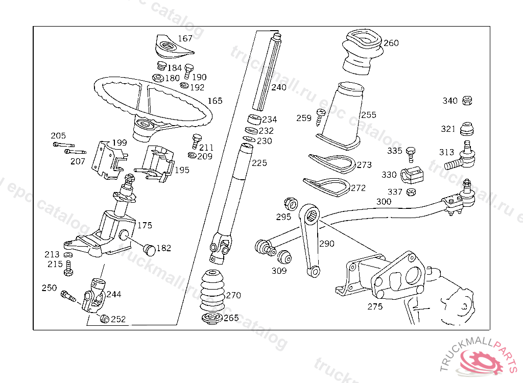 STEERING SHAFTLEMFOERDER, USED WITH SHORT MERCEDES-BENZ CAB