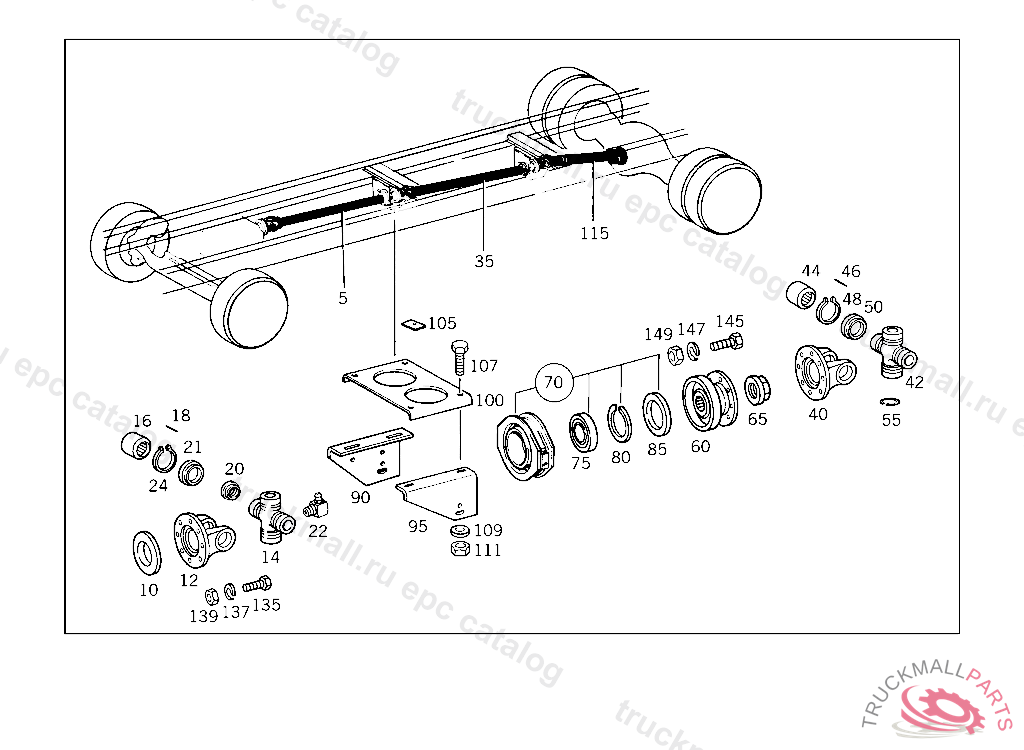 PROTECTIVE CAP FOLLOWER FLANGE, INTERMEDIATE BEARING, BALL BEARING IN RUBBER SEAT