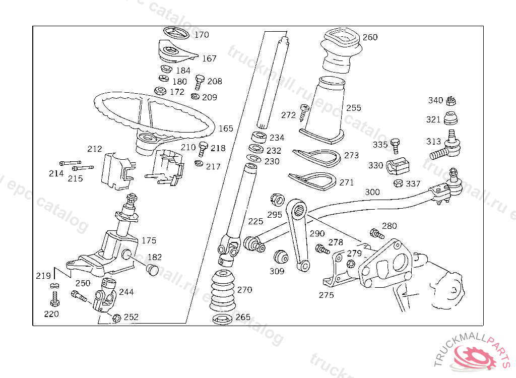 STEERING SHAFTLEMFOERDER, USED WITH SHORT MERCEDES-BENZ CAB