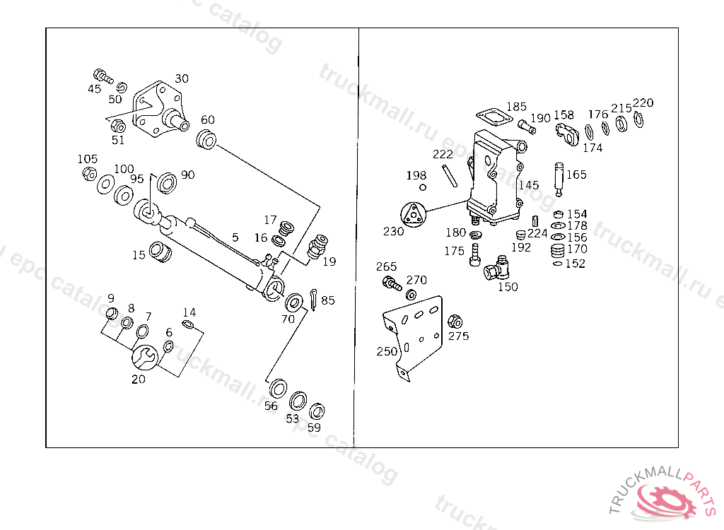 BEARING BRACKET HYDRAULIC CYLINDER, MODEL 415/416/417 FOR USE WITH SHORT CAB MERCEDES BENZ 415 5 014668 416 5 000515 417 4 972023