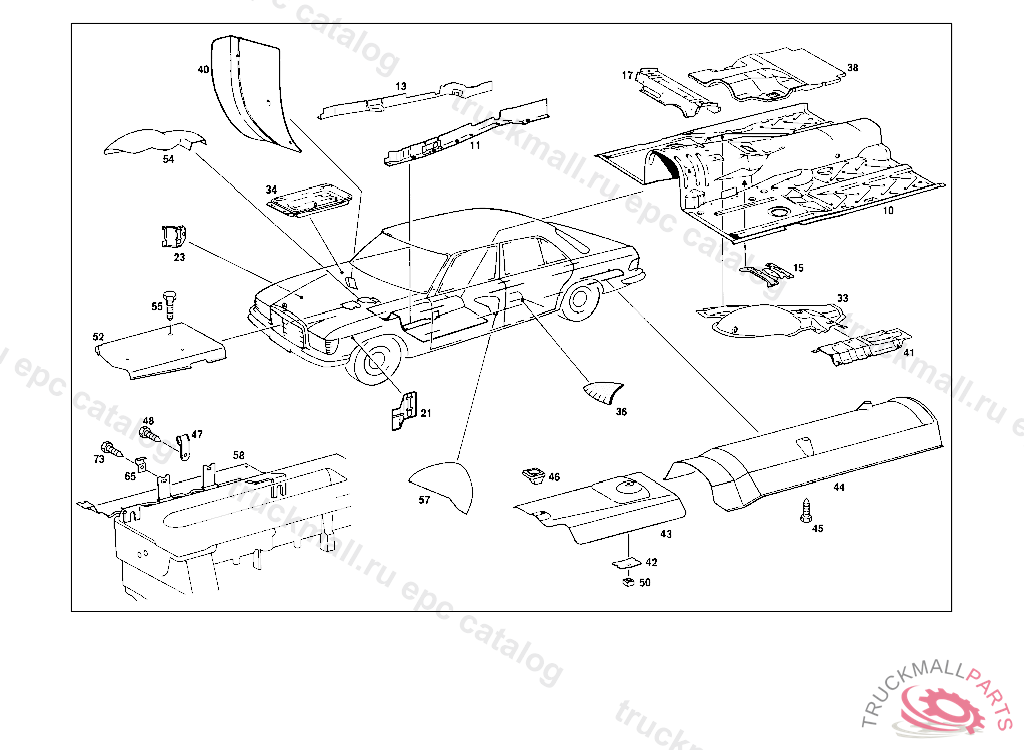 SCREENING IN FRONT OF CENTRAL MUFFLER, 116.024 FROM CHASSIS 117446 ALSO INSTALLED ON 116878,117439
