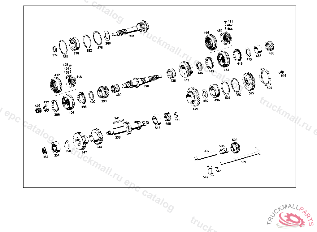 COUNTERSHAFT , 000,001,004,010,016,100,101,104,110,116 FROM TRANSMISSION 414557, 002,003,005,011,017 FROM TRANSMISSION 011431