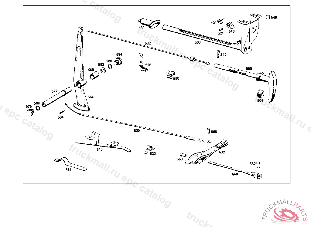 BRAKE CABLE FRONT, NOT FOR USE WITH MERCEDES-BENZ HYDRAULIC-AUTOMATIC CLUTCH 010,10/50,12/52 FROM CHASSIS 048977 ALSO INSTALLED ON,SEE FOOTNOTE 53,010,20/60,22/62 FROM CHASSIS 049091 ALSO INSTALLED ON 04 6334,048382,048491