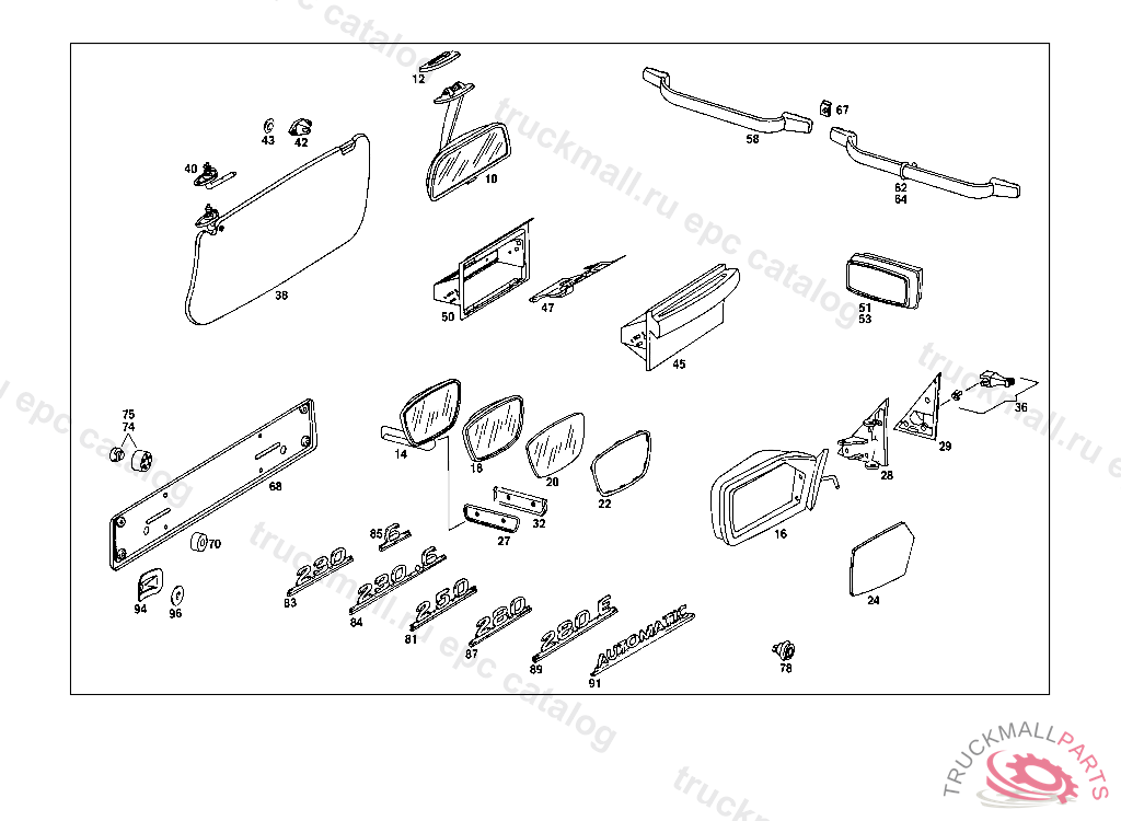 MIRROR GLASS RIGHT, UP TO END OF MODEL YEAR '82