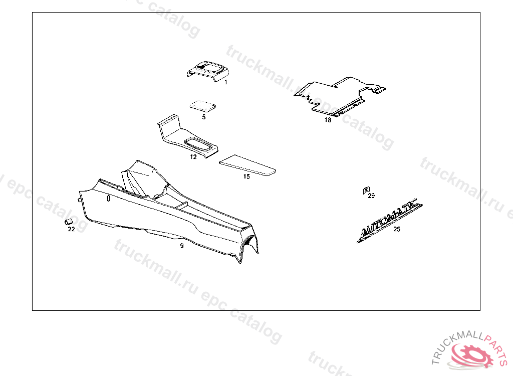 7. 001 BODY PARTS USED WITH FLOOR SHIFT AND AUTOMATIC TRANSMISSION