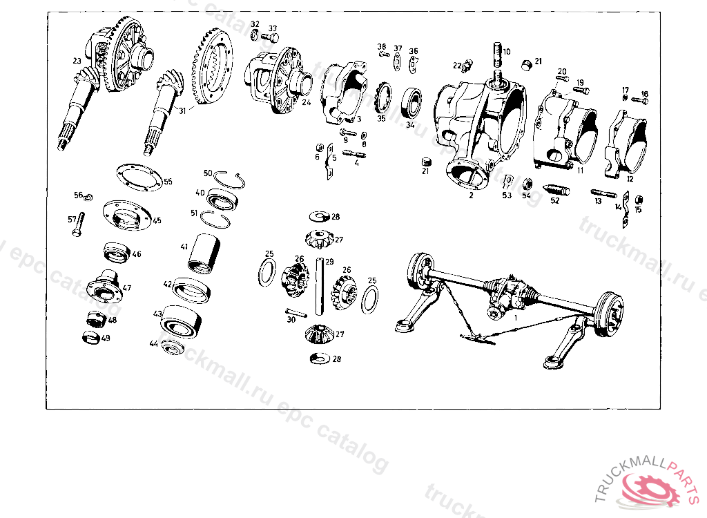 DIFFERENTIAL GEAR, RATIO 1 : 4.11 FOR TIRES 6.40-15