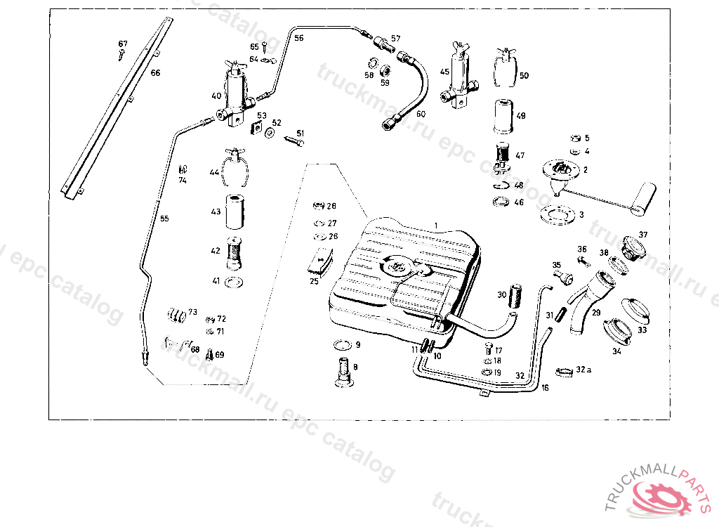 FUEL TANK WITH SCREW PLUG. FUEL TANK CAPACITY 56 LITERS
