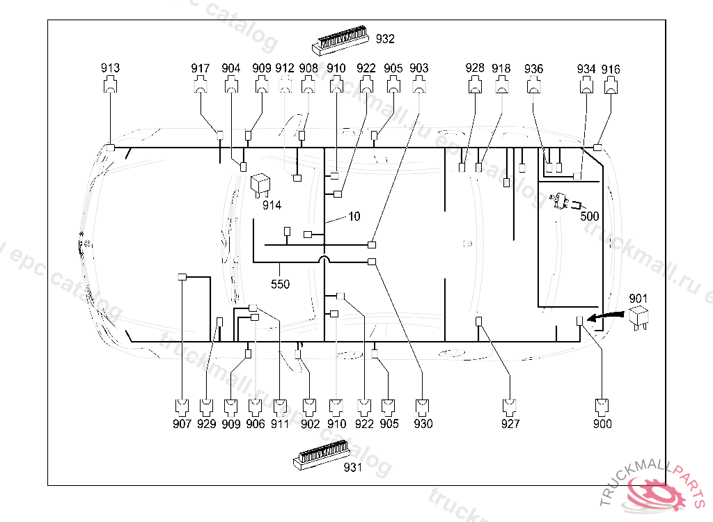 ELECTRICAL WIRING HARNESS FRAME FLOOR UNIT MAIN CABLE HARNESS, STATE IDENT NO. WHEN ORDERING THE CORRESPONDING SPECIAL EQUIPMENT IS CONTAINED IN THE WIRING HARNESS ACCORDING TO THE VEHICLE PRODUCTION NUMBER