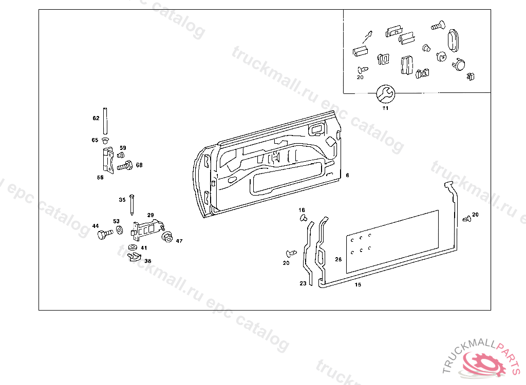 DOOR SHELL RIGHT, ORDER ADDITIONALLY UP TO CHASSIS: 1X 123 720 03 16, 3X 000933 006122 043 015388 050 003426 053 017102