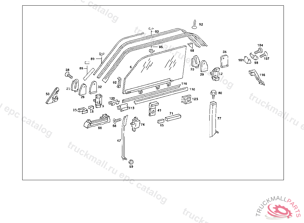 CRANK OPERATED WINDOW RIGHT FRONT DOOR, FROM CHASSIS 123.043 009141 123.050 002669 123.053 012246