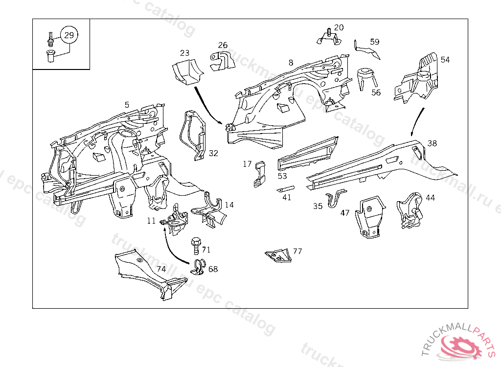 END PIECE BETWEEN WHEELHOUSE AND RIGHT SIDE MEMBER