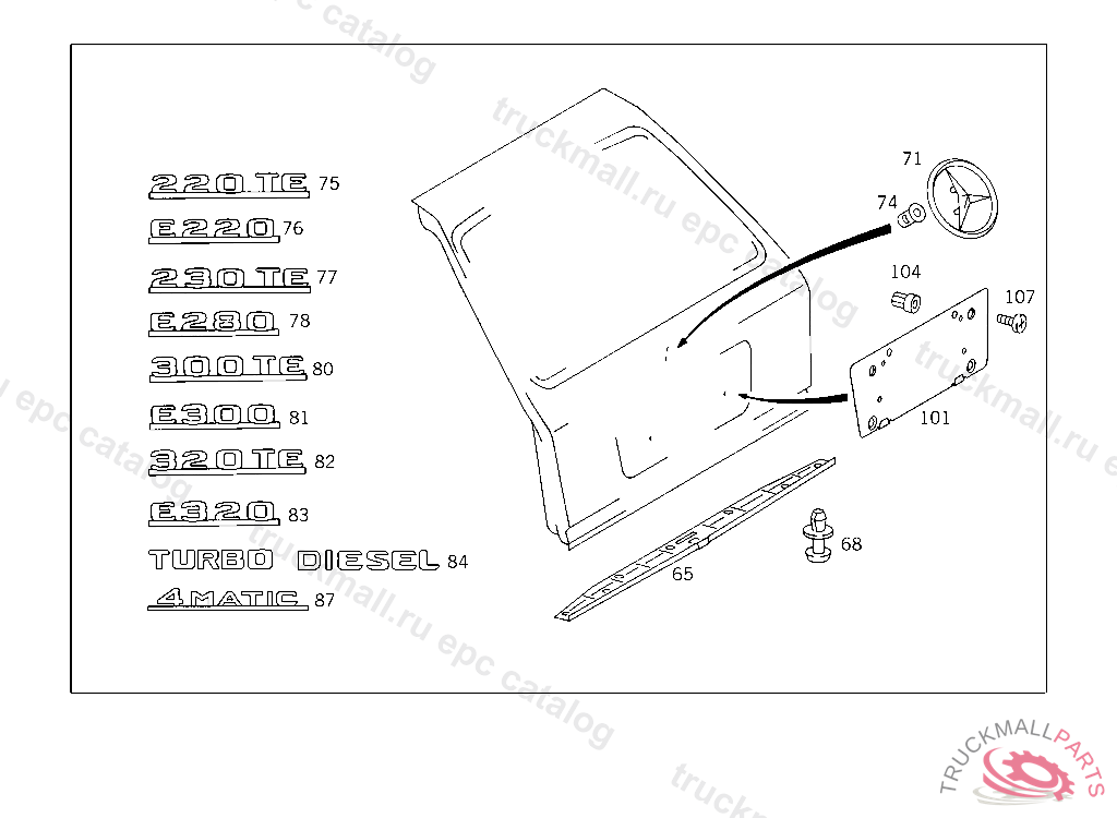 TYPE DESIGNATION ON REAR PANEL DOOR,TO BE GLUED "300TE", UP TO END OF MODEL YEAR 93