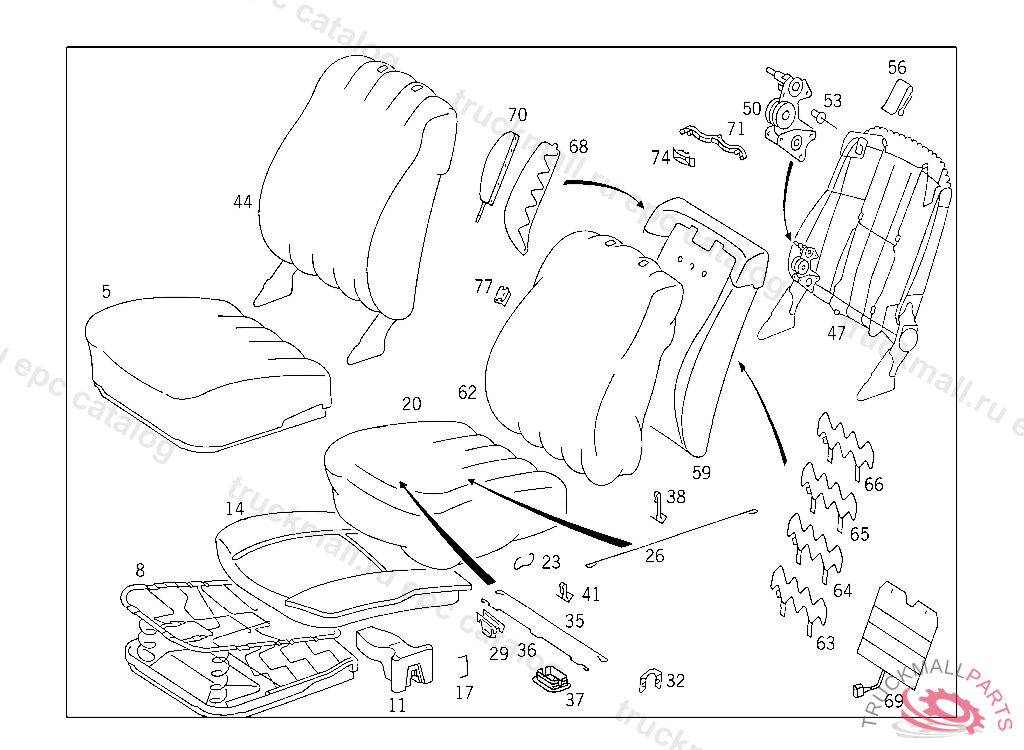 SEAT CUSHION MB-TEX,RIGHT,LESS HIGHT ADJUSTMENT,NO.9045I NO.5070I NO.8310I NO.8320I NO.8411I NO.6121I NO.3111I NO.7095I I
