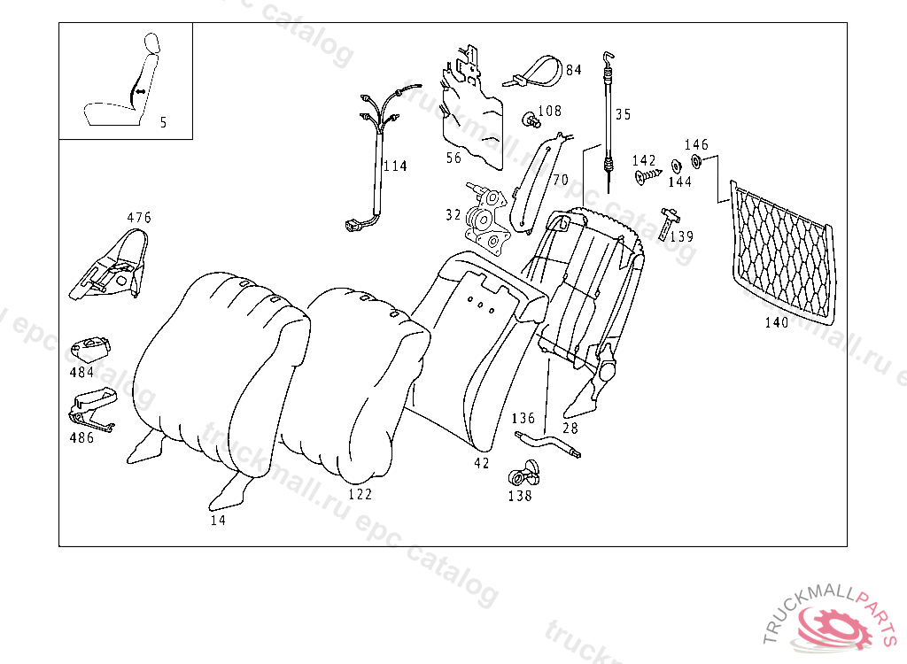 BACKREST LEFT SEAT, NO.9068I NO.5085I NO.8E44I NO.8419I NO.8405I NO.6115 AI NO.3105I NO.7135I I NO.6125 BI