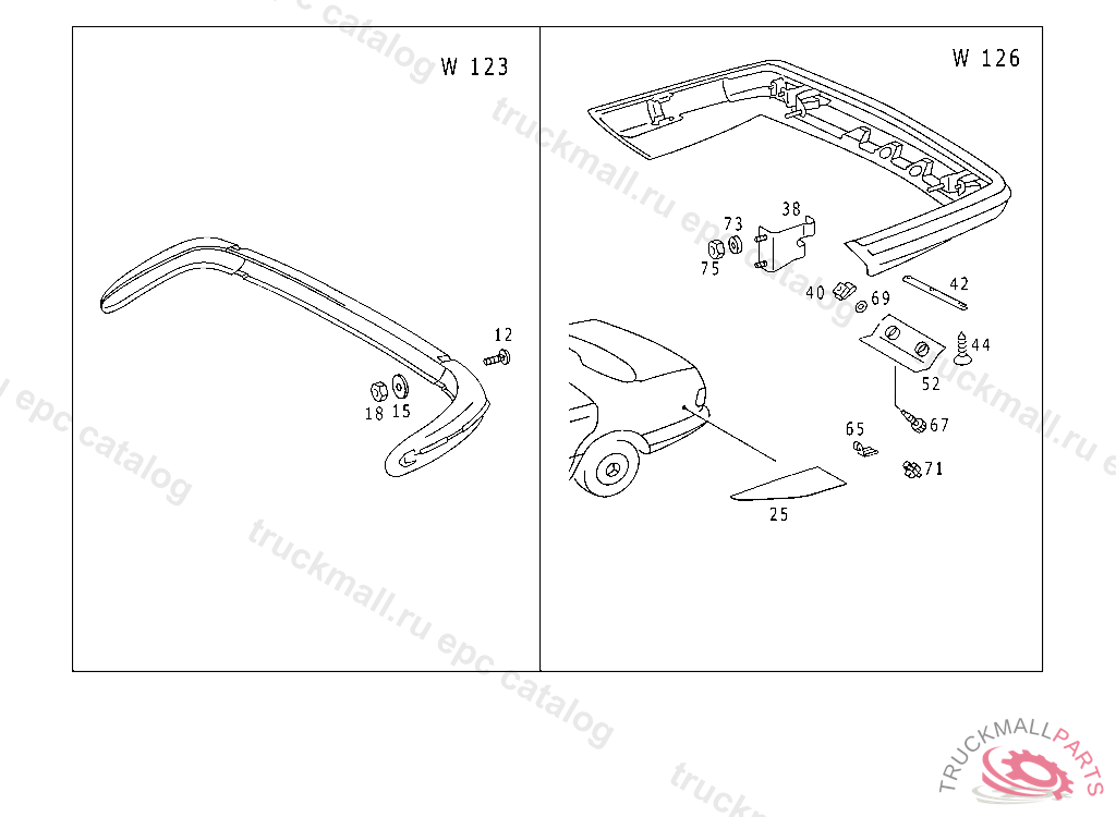 REINFORCEMENT BUMPER PANELLING, 126.021 007940 126.022,023 028639 126.032,033 012541 126.036,037 008661