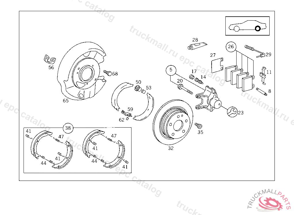 BRAKE SHOE RANGE OF DELIVERY, WHEN SELLING BRAKE LININGS TO END USERS/DESK BUYERS THE A 203 005 25 99 IS TO BE HANDED OVER FREE OF CHARGE