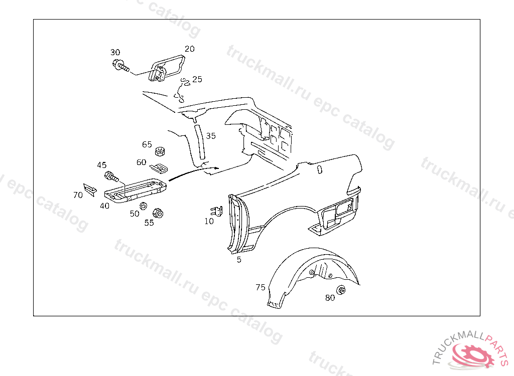 REAR FENDER LESS HOLE FOR ANTENNA,LEFT, F 125158 EXCEPT CODE 805 ALSO INSTALLED IN VEHICLE TO F 125157 WITH CODE 806