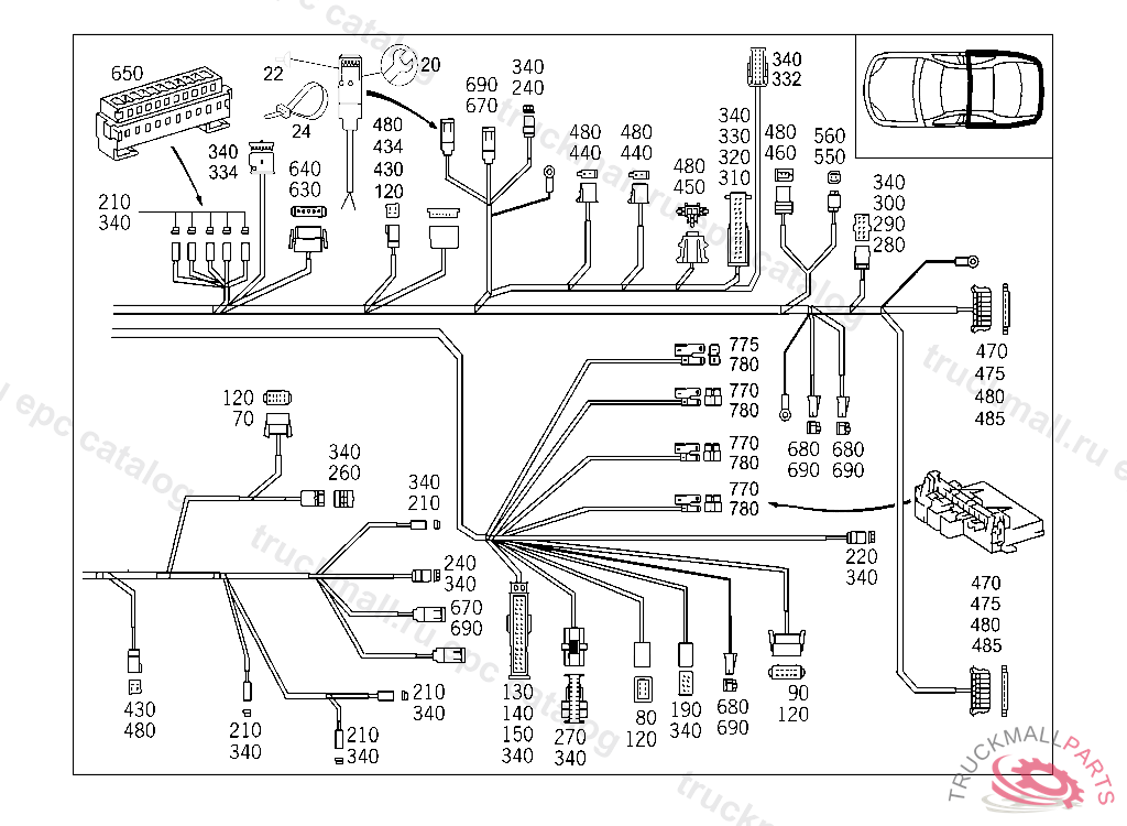 CABLE HARNESS SIDEBAG, STATE IDENT NO. WHEN ORDERING