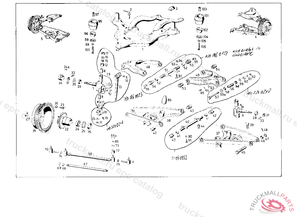 REPLACED BY 180 330 19 98 TOGETHER WITH 2 PINS 180 421 06 71 UP TO FRONT AXLE 8531468