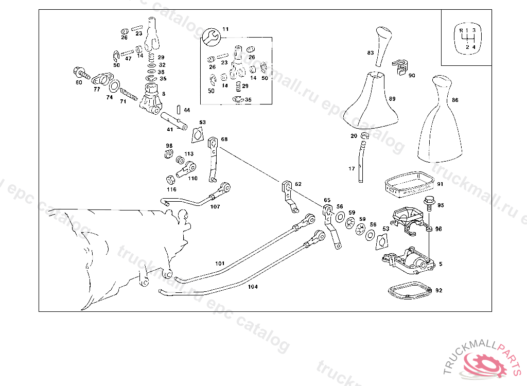 26 GEARSHIFT MECHANISM - 015 FLOOR SHIFT USED WITH MANUAL FOUR-SPEED TRANSMISSION