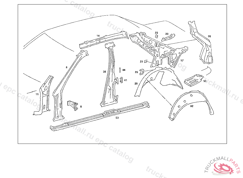 WHEELHOUSE , FIRST EXHAUST STOCK OF OLD PARTS UP TO IDENT NO. A 497515 F 628285, Replaced By: A2016371076