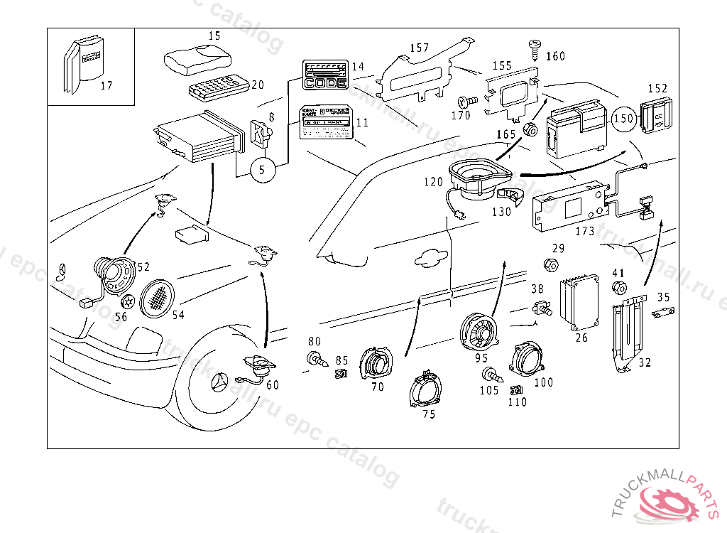 RADIO SET ASSEMBLYMB AUDIO 30, F 046208 EXCEPT CODE 808 ALSO INSTALLED IN VEHICLE TO F 046207 WITH CODE 809 F 129678 T 028295 EXCEPT CODE 800 ALSO INSTALLED IN VEHICLE FROM F 129679, T 028296 WITH CODE 809